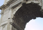 El Arco de Tito, construido por Domiciano en el 81 d.C., se adelanta hacia la parte alta de la